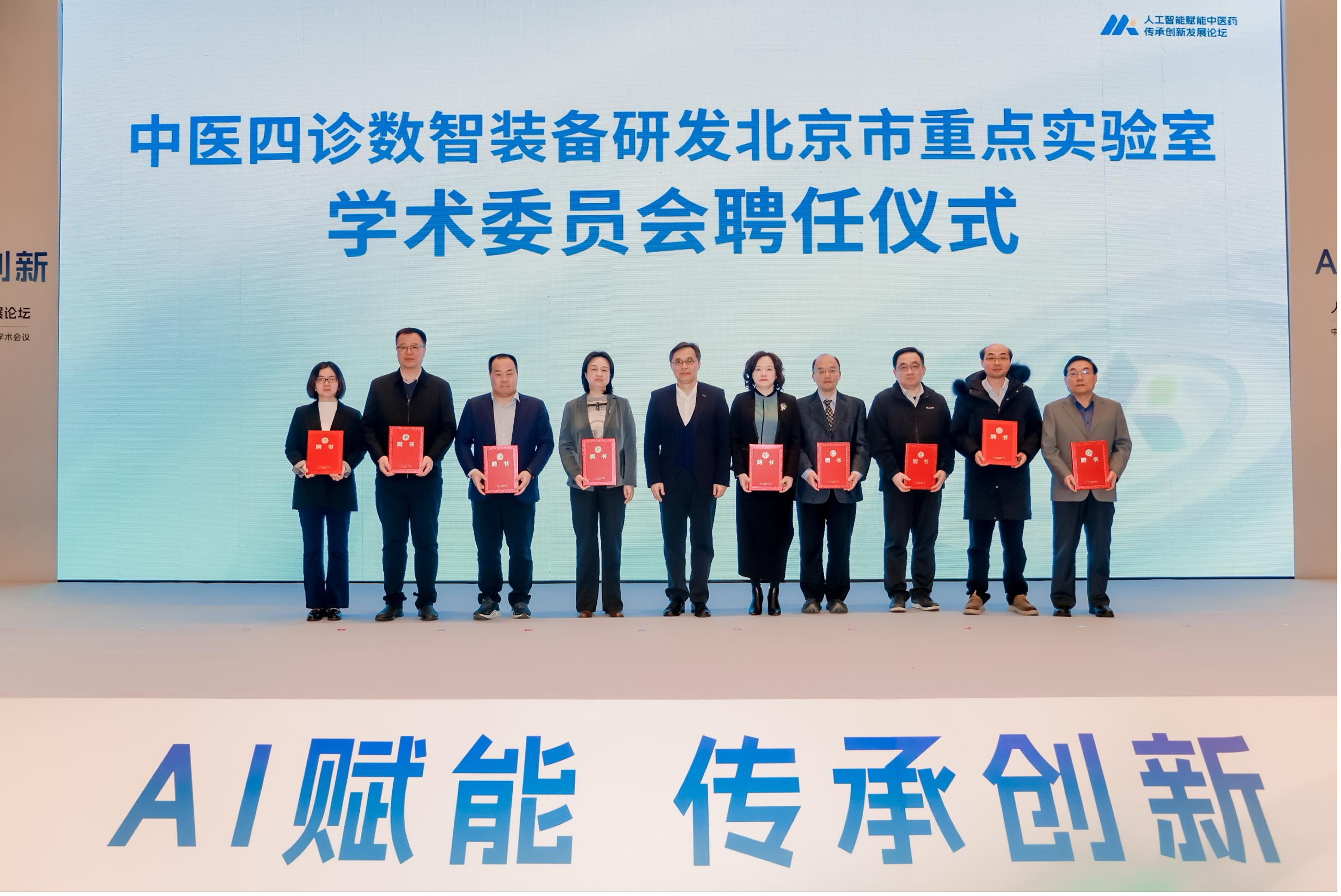 会议期间举行了中医四诊数智装备研发北京市重点实验室学术委员会聘任仪式。中国工程院院士、中国中医科学院院长黄璐琦担任学术委员会主任,中国工程院院士、清华大学教授程京和中国科学院自动化研究所研究员曾大军受聘为学术委员会副主任。