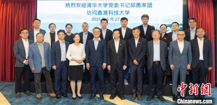 7月8日,香港科技大学公布,近期与清华大学签订三项合作协议。图为6月27日,香港科技大学校董会主席沈向洋(前排左五)、校长叶玉如(前排左四)接待由清华大学党委书记邱勇(前排右五)率领的代表团。(香港科技大学供图)