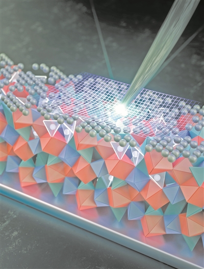 固体电解质的晶体结构(示意图),其表面覆盖一层极薄银涂层。