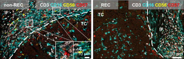 TIMES标志物及CD57在非复发与复发组织中的多色免疫组化染色结果