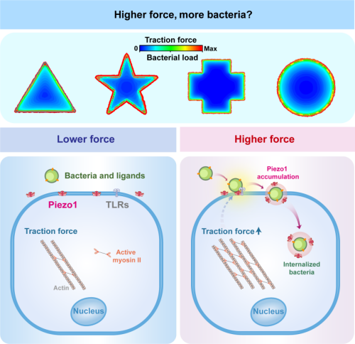 中国科学院深圳先进技术研究院研究员黄术强团队与中国农业大学教授朱奎团队、北京大学研究员黄建永团队合作,通过跨学科协同创新,从“器官几何结构特征-细胞力信号转导-病原菌感染”互作机制出发,首次揭示组织形态特征调控细菌感染的新规律。同时,团队提出了基于力敏感离子通道蛋白Piezo1的抗菌策略,为抗菌药物提质增效、降低毒副作用和指导合理用药提供了潜在方案,具有临床应用前景。