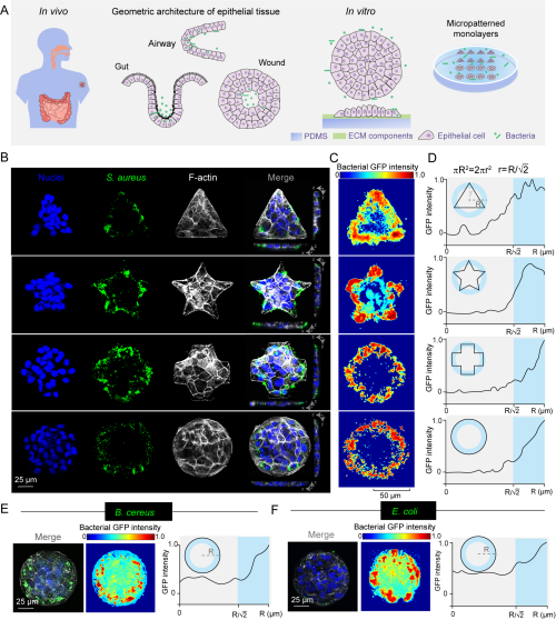 上皮细胞层是人体抵御外界感染的“第一道防线”。在维持身体正常状态、保护屏障和抵抗感染的过程中,上皮细胞层的形状和结构不断发生变化。研究发现,细菌能够通过识别器官组织的几何特性以破坏细胞层的保护作用并引发感染扩散。虽然解析组织器官几何特性调控细菌感染的具体机制对开发新型抗感染疗法具有重要意义,但这一科学问题尚未得到充分揭示。