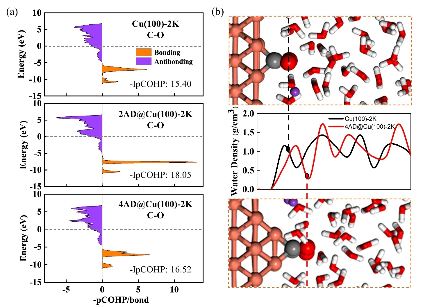 铜因在电催化中可将二氧化碳还原为多碳产物(C2+)的能力,受到广泛关注。C-C偶联是形成C2+产物的关键步骤。原位实验表明,在电催化二氧化碳还原反应条件下,表面会发生明显重构。然而,对于重构表面的原子结构及其与界面水分子共同作用对反应机制的影响,目前尚缺乏深入理解。